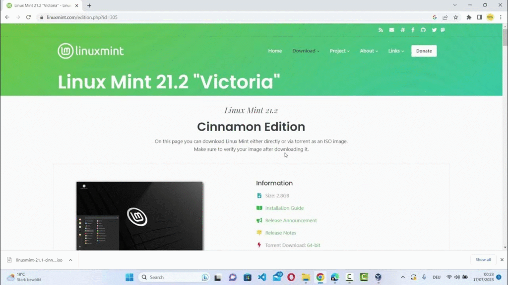 Go to the official website and open the download section. You will see options for Cinnamon, MATE, and Xfce editions.