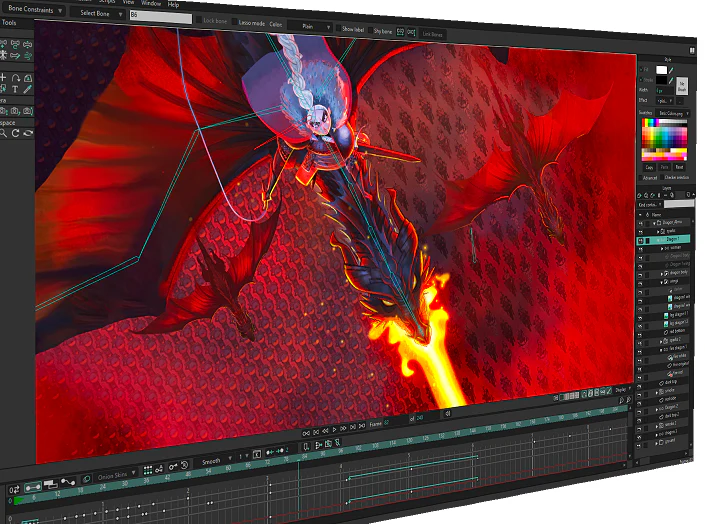 The software offers advanced tools for bone rigging, smart meshes, and vector drawing, giving you complete control over your animation projects.
