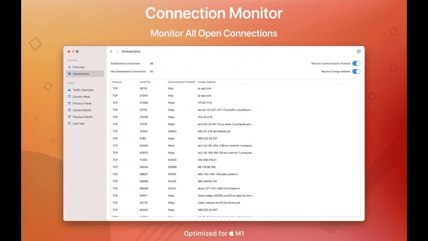 NetWorker Pro gives Mac users a clean and simple interface to monitor their current network activity. It can show network speed, data usage, and active connections from the menu bar. The tool is highly customizable, allowing you to choose how the information appears and which network device you want to watch. With minimal system resource usage, it runs smoothly in the background.