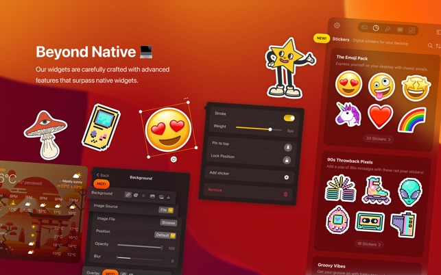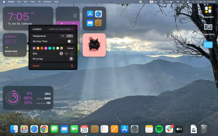 • Add various widgets like clocks, notes, weather, and CPU monitors